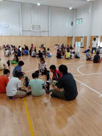 美味しいお弁当を食べ、開舎式をしました。暑さ対策をしっかりしながら、午後の活動を楽しみたいと思います。
