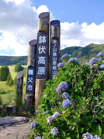 「山の風はいいなぁ」とたそがれ、つぶやく5年生男子。かわいいですね。まだアジサイも満開です。