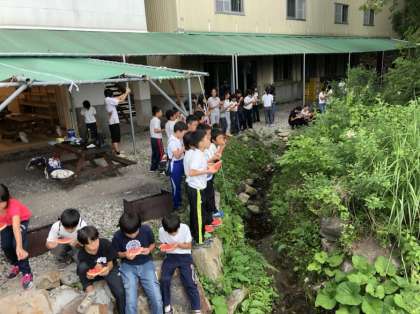 おやつはスイカを頂きました。種を川に向かってプッと飛ばすのは、林間の良い経験ではないでしょうか?