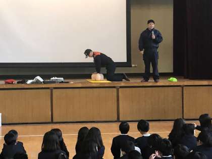高学年は、旭消防署の方から、「救急救命」について教えていただきました。