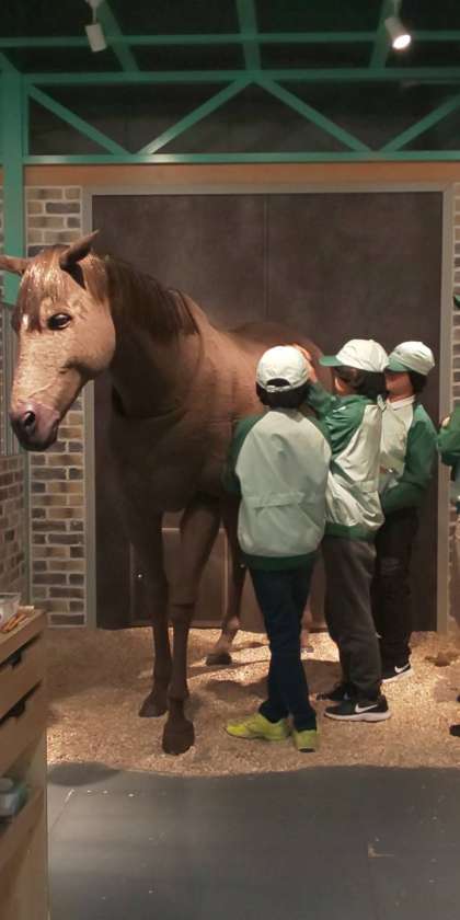 写真は、上から「自動販売機の点検」「メイクアップ」「馬のお世話」です。