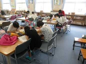 旭区の事業である「おさらい教室」を夏休みに図書室で実施しました。7月22日(火)〜8月6日(水)の12日間、午前10時から1コマ50分で7月は2学年ずつ3コマ、8月は3学年ずつ2コマ行いました。夏休みの宿題はもちろん漢字ドリルや計算ドリル、学習プリント等を用いて指導員の支援のもと自主的な学習習慣の定着を図るためです。多くの児童が集中して学習に取り組みました。