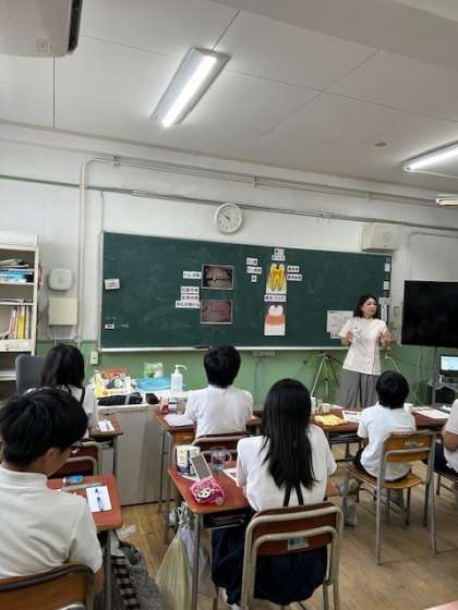10月3日(金)に歯科衛生士が来校し6年生に歯と口の健康教室をおこないました。