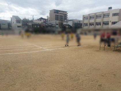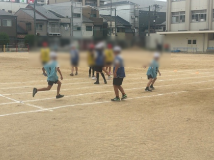 運動場で4年生の