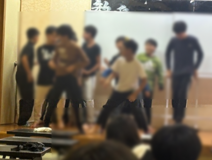 夕食のあとは、準備委員会のメンバー主催による、お好み演芸タイムです。カラオケやバックダンサーの頑張りで、大変盛り上がりました。
