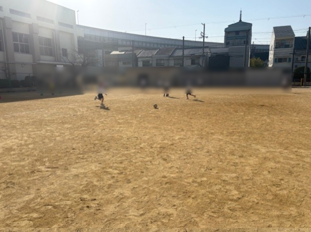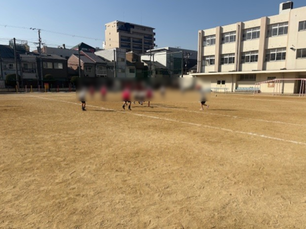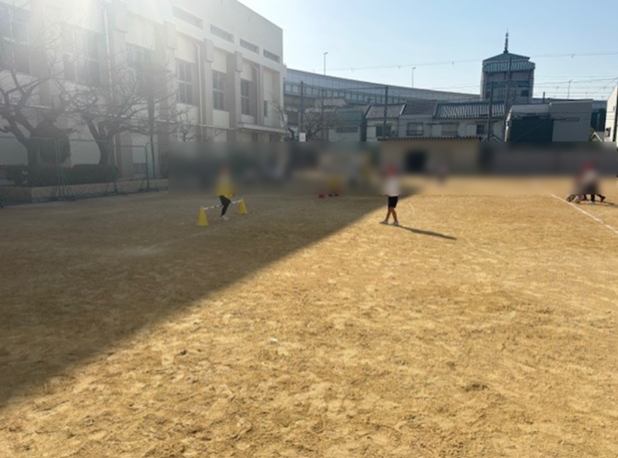 運動場で1年生の