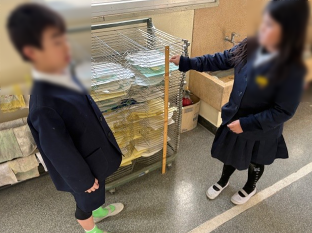1m竹定規をあててはかっていました。