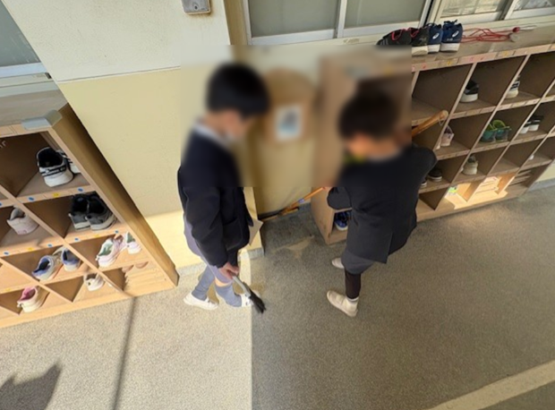 今日は、職員室と校長室前の廊下で、いっしょうけんめい砂の掃き出し掃除をがんばっていました。大助かりです。