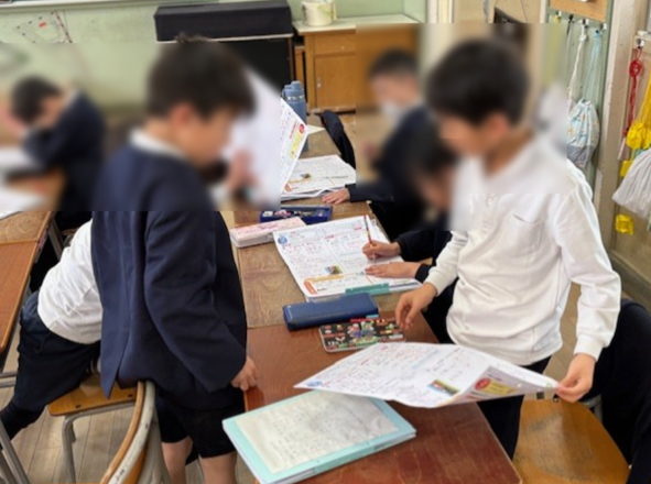 国語テストの返却をしていました。