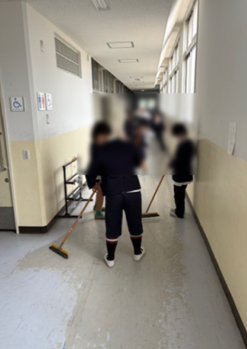 教室の床もピカピカに磨いていました。