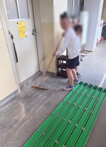 1年生も教室のそうじをがんばっていました。