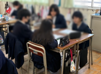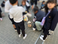 本日講堂前で3年生の総合の学び合いを見ることができました。「七輪体験」という...