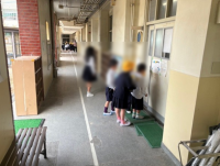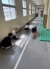 本日も子どもたちはパックン清掃をがんばっていました。廊下をがんばってお掃除する子...