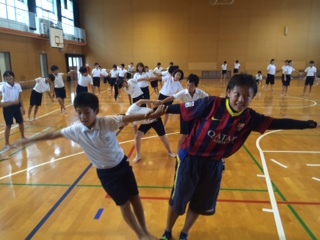 簡単そうに見えて、二人の息を合わせるのが難しい技です。