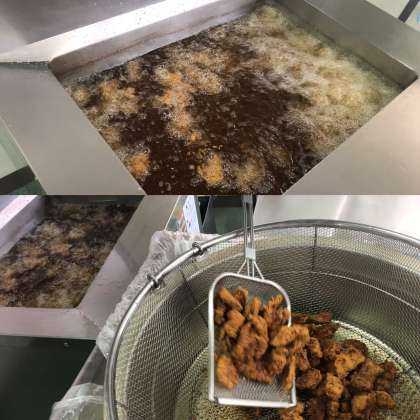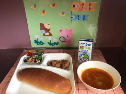 今日の給食献立の「一口トンカツ」は、手作りでした。