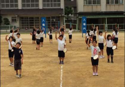 そんな中、中学年の団体演技「生江エイサー〜命(ぬち)どぅ宝〜」の練習も大詰めを迎えています。パーランク(太鼓)とバチを持って、元気に踊っている子どもたち。練習を重ねるにつれてパーランクの音も動きもどんどん大きくなってきました。