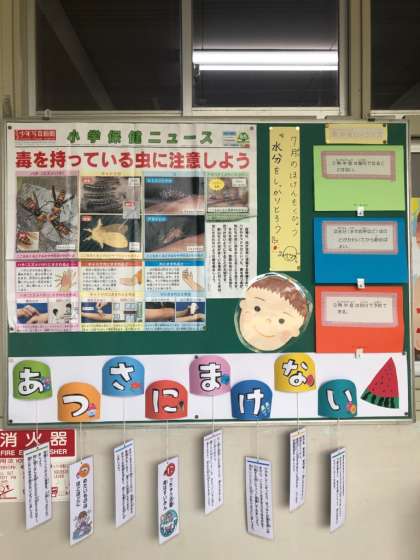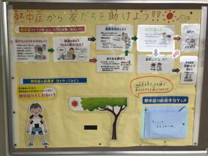 熱中症にならないように、予防・対応の仕方を掲示しました。