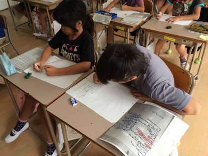 3.ホワイトボードに書いた内容を参考にして原稿用紙に感想文を書く