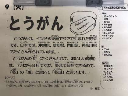 今日の給食献立では、「とうがんの煮もの」として登場しました。