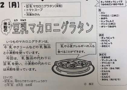 乳、小麦アレルギーのある児童生徒に配慮した献立となっています。