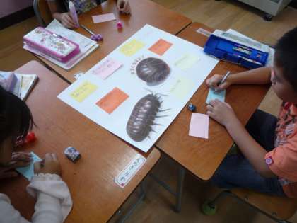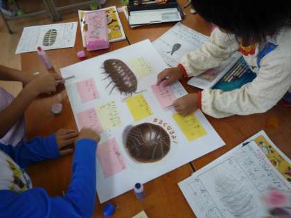 火曜日の生活の学習と図書の時間で、ダンゴ虫としっかり触れ合った1年生。