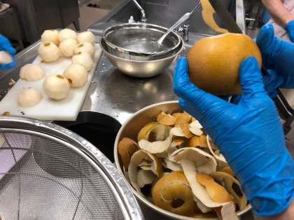 なしは、給食調理員さんが1つずつ皮をむいてくれました。