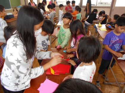折り鶴リーダーの6年生中心に折りましたが、1・2年生もとても上手に折っていました。
