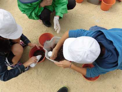 地域の方に種の植え方を教えていただいてポピーとキンセンカを植えました。