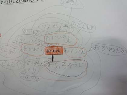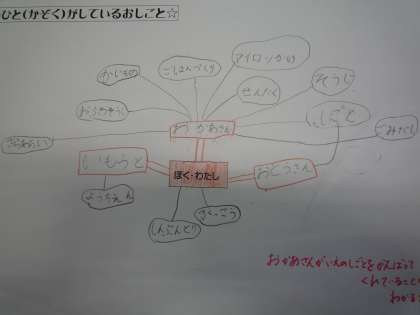 「ごはんをつくる」「せんたく」「しょっきあらい」「そうじ」「かいもの」などなど、おかあさんからはたくさんの仕事が線でつながれました。