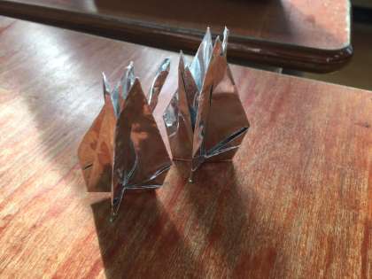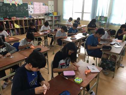 広島にもっていく、千羽鶴づくりが最終段階に入りました。