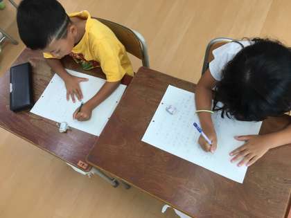 一気に書き進む子もいれば、考えながら慎重に書いている子もいました。