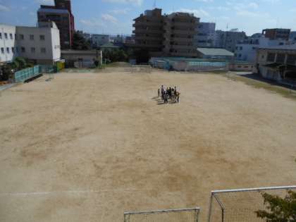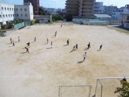 独り占めできる!ということで運動場一面を使ってサッカーをしていました。