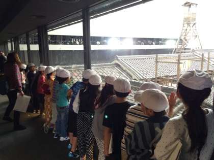 今日はとても天気がよく、校外学習日和!3年生は全員そろってくらしの今昔館と扇町公園へ行ってきました。