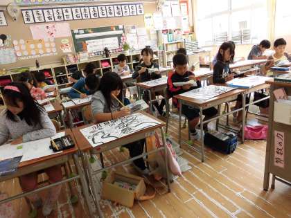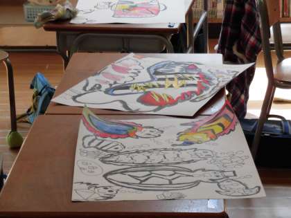子どもたちは自分のぬりたい色を苦労しながら作ってぬっていました。特に茶色を作るのが大変でした!