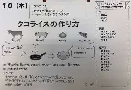 タコライスは、いためて味付けをした挽肉と野菜をごはんの上にかけて食べる料理です。