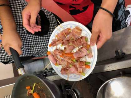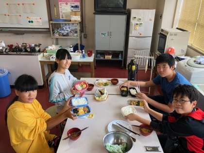 栄養教諭の三村先生、中学校との連携で来てくれている英語の田村先生も手伝って、とってもおいしい料理ができました!