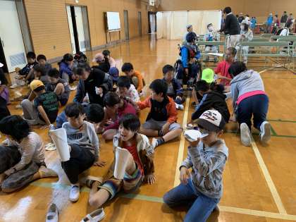 防災訓練では、煙体験や水消化器体験、紙スリッパ作りをしました!!煙体験は、前が見えないくらいの煙に右も左も、大事な出口もわからなくなったそうです。煙の恐ろしさを身をもって学んだ様子でした。