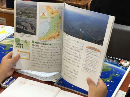 大阪府の地形図を見て、周りを山に囲まれているということや西側には海があるということを学びました。