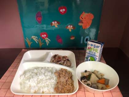 今日の献立は、ごはんとあうツナ大豆そぼろがでました。