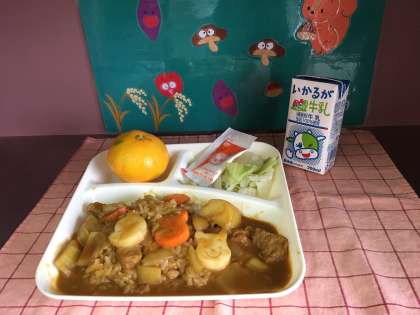 調理員さんがジャガイモやニンジンを楽しいキャラクターの形に切ってくれました。