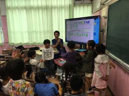 タブレットを使ってサラダに入れたいものを考えて発表しました。