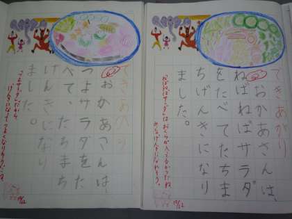 物語を読み進めるとともに、主人公のりっちゃんにサラダに入れるといい食べ物とそれを食べるとどんなことができるようになるかも一人ひとり考えて、教えてあげる学習もしました。