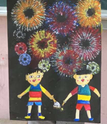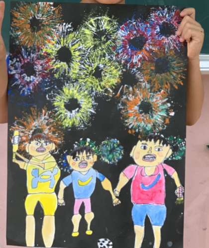 図工科で作品展の作品として制作していた花火の絵が完成しましたー!!
