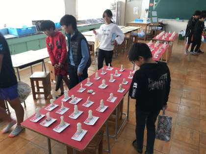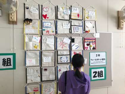 後半は、各学年が図画工作科や家庭科などの時間に作成した作品を見ました。