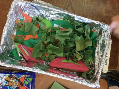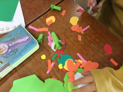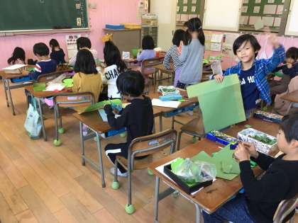 国語科で学習した、『サラダでげんき』をもとに、自分オリジナルのサラダを作っています。