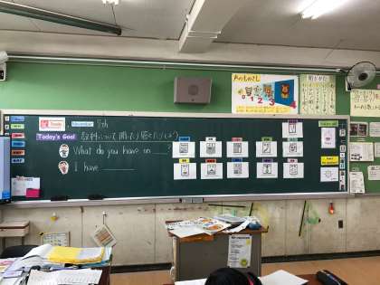 先週に引き続き、外国語の授業では、各曜日の授業予定を英語で聞いたり答えたりしました。