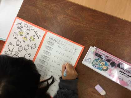 イラストを用いて、4つずつ増えていくことが理解できるように工夫しています。