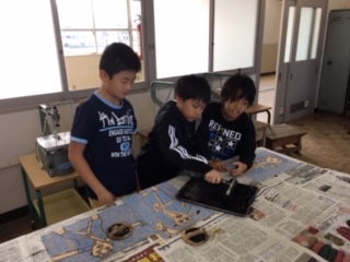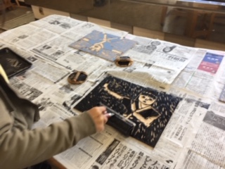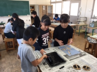 一生懸命彫った版に、インキをつけて、和紙に刷り取りました。