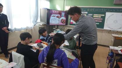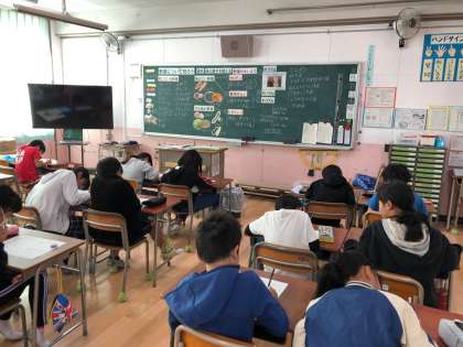 2時間目に4年で「野菜について知ろう」、5年で「五大栄養素について知ろう」の栄養指導を行いました。