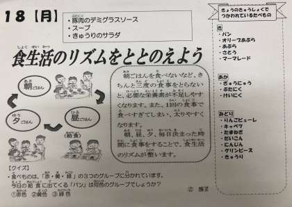 11月18日(月)給食献立!